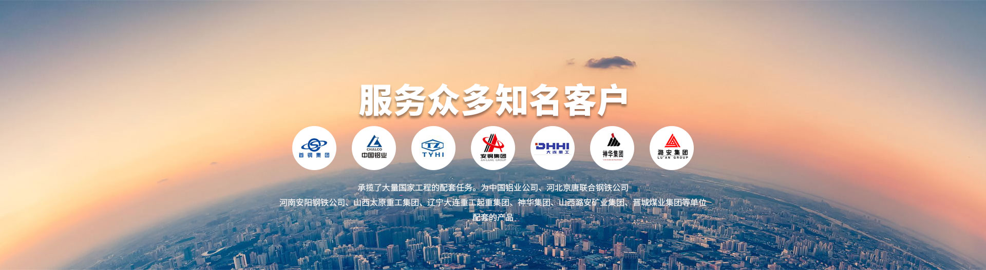 公司近年來承攬了大量國家工程的配套任務。為中國鋁業公司、河北京唐聯合鋼鐵公司、河南安陽鋼鐵公司、山西太原重工集團、遼寧大連重工·起重集團、神華集團、山西潞安礦業集團、晉城煤業集團等單位配套的產品